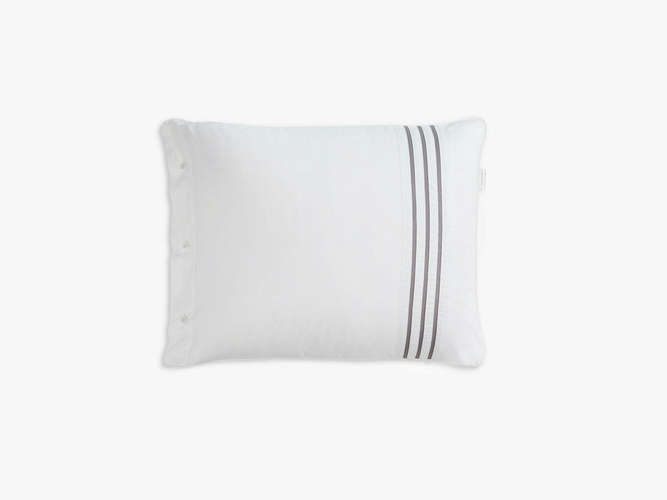 Stiltje PillowcaseExclusive pillowcase in white cotton satin with decorative grey lines, size 50x60. Made in Egyptian cotton with a thread count of over 300 threads per inch. Oeko-Tex® Standard 100 certified.