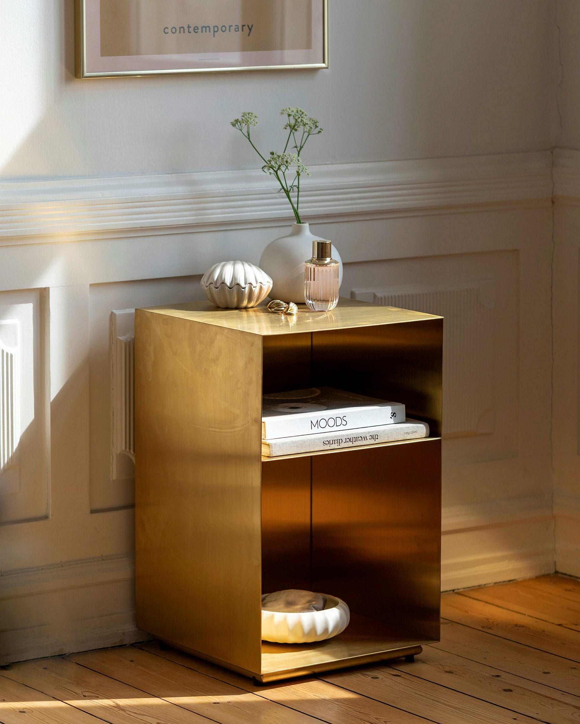 A collection of nightstands featuring clean lines and a minimalistic design, available in various sizes, materials and finishes.