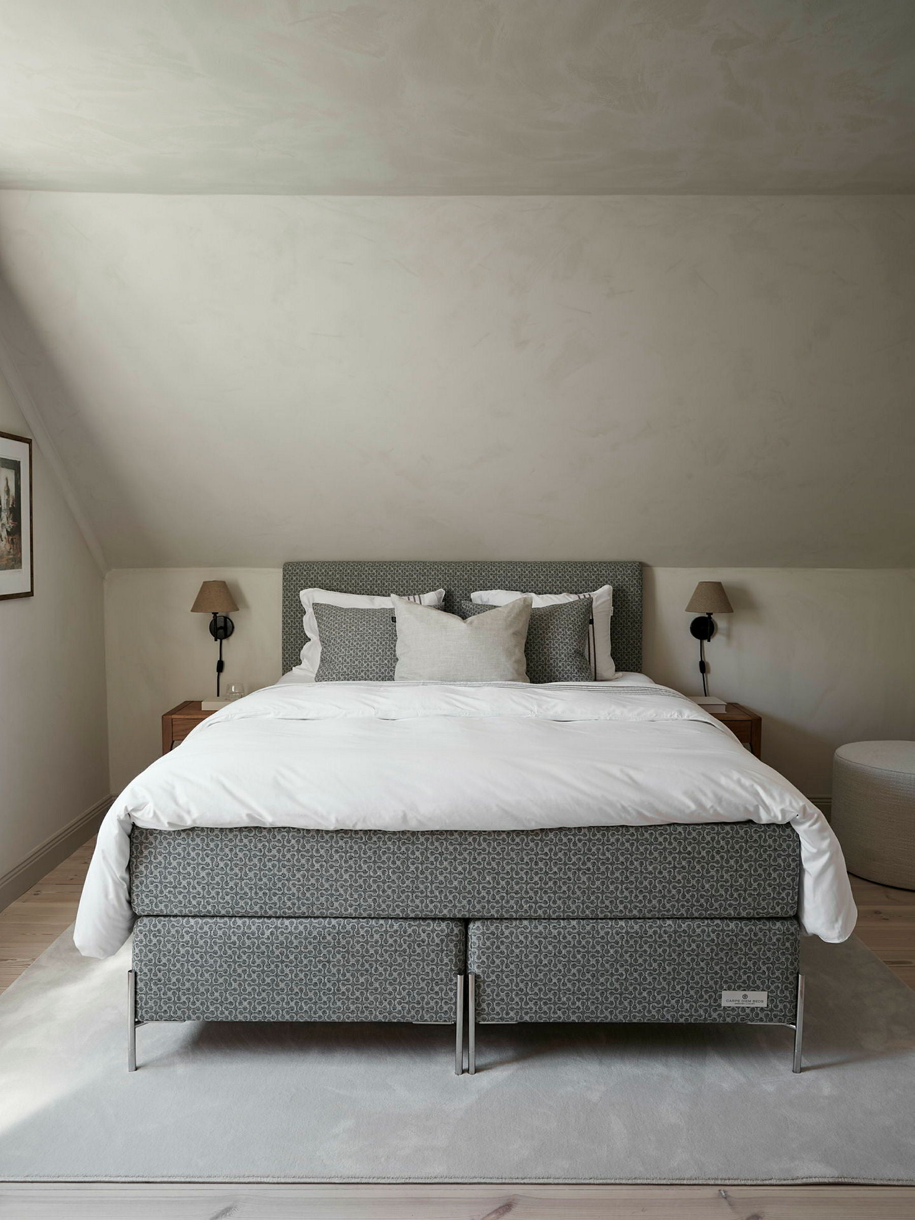 Exclusive duvet cover set in white cotton satin with decorative grey lines for a double bed with two pillow cases, 240x220 cm. Made in Egyptian cotton with a thread count of over 300 threads per inch. Oeko-Tex® Standard 100 certified.